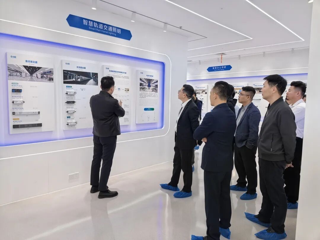 交流期间,在微观科技相关负责人的全程陪同下,科视光学高管团队先后实地参观了企业展厅、核心研发实验室及SMT数字化智能化示范车间。参观过程中,微观科技相关负责人详细讲解了企业的发展历程、核心业务板块、研发创新成果、产品生产流程及应用场景。从可任意折弯适配多元场景的线性照明产品,到“上下楼就是上下游”的高效闭环产业链;从实时动态监控生产全流程数据的数字化管理看板,到配备高端设备的行业领先专业检测实验室,每一处细节都彰显着微观科技对技术创新的执着追求与精益管理的极致坚守,让大家深受触动、频频赞叹。